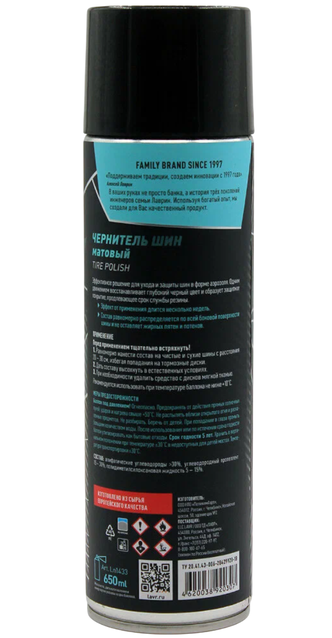Чернитель шин LAVR 650 мл аэрозоль матовый