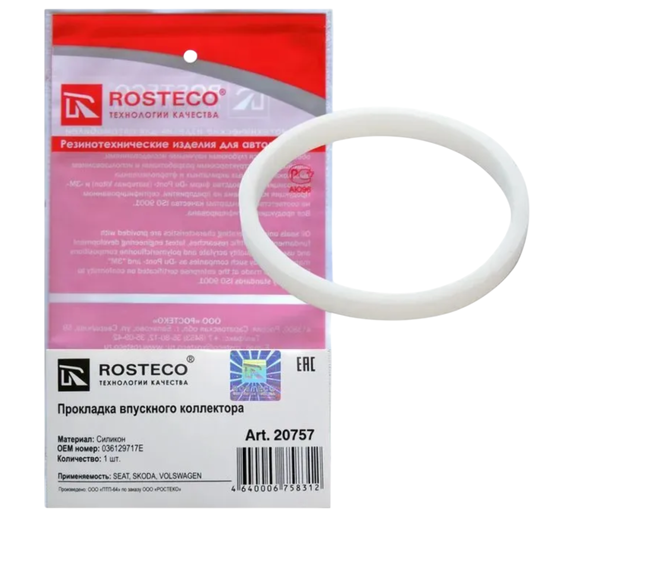Прокладка впускного коллектора силикон VAG Golf, Bora, Lupo, Polo Audi Skoda Rosteco 20757